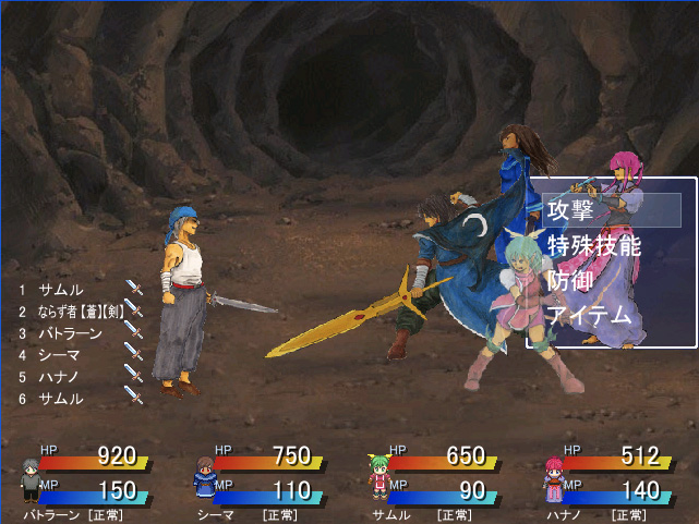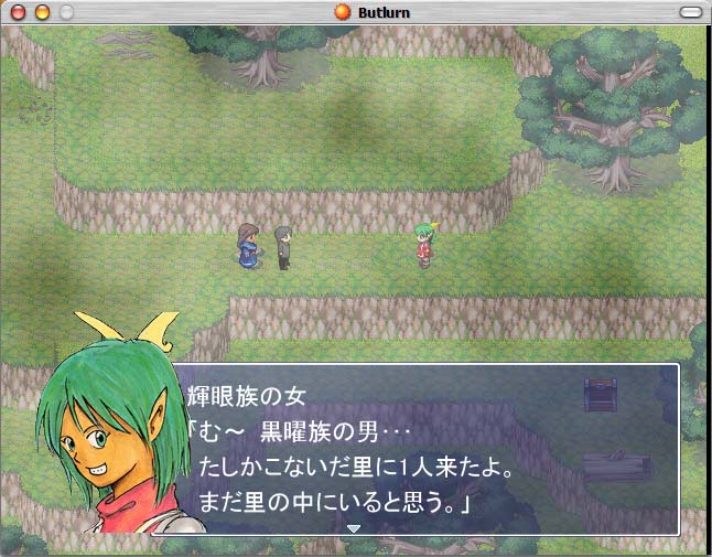 これはまずい!と思って、一年でどれぐらい進んだのかをご報告します。定例報告会だね!(ぜんぜん定例じゃない ◆はじめに まず、前回BUTLURN.のスクリーンショットを載せたのが、2007年12月です。 その時は、第二話以降のお話を紹介しました。ですが、ゲーム自体は、「このお話が第何話」という概念はなく、ある程度自由に選べるようになっています。 でも、今のところどれも必須イベントではあるので、かならず通らなければならないイベントではあるんです。それでも通らなければならないイベントを、ある程度自由に選べるように配慮しました。 それをかねて言うと、現状では15話程度までイベント組み込みを完了しています。 予定では、この倍ぐらいのシナリオ量になるんじゃないかな、という感じで作っています。 ◆1年間で進んだこと 去年は主に素材とシナリオ練り直しを行っていました。 特に、顔グラフィックに関しては、総数が350を越える量に達し、タイルセットもここで素材として配布しているものなどを制作しました。 アクティブタイムバトル(ATB)を採用していましたが、現在カウントタイムバトル(CTB)の戦闘スクリプトを採用しています。戦闘のレイアウトは現状のものとほとんど変わりません。 戦闘中、仲間を入れ替え出来るスクリプトを採用しました。 より戦闘を楽しめるようになると思います。 また、カウントタイムバトルでとある特殊なシステムを組み込もうといろいろいじってます。 なかなか難しく、それはまだ完成出来てません。詳細はまた今度。 ・・・と、1年間でどの程度進んだかっていうと、自分の中では全然進んでいませんorz ツクシィ楽しいんだもの。 制作はずっとしてるんですけどね。色々手を出しすぎる俺。 ◆今後進めたいこと えーと、シナリオ練り直したと上記であるんですが、はっきり言って納得のいく出来ではないんです。 自分の中でやりたいこと、表現したいことというのを今一度考え直す必要があるなと。 そして、それをするためにはシナリオやキャラ構成をもう一度練り直すしかないんじゃないかと。 あ、でも15話分のすでに組み込んだイベント・シナリオはそのままにしようと思います。 自分のシナリオ力のなさに気づいたのが最近です。遅いよ!ヽ(`Д´) ノ なので、RGSS(戦闘やシステム関係)をまず完成させたいなーと思っています。うー とりあえずこんな感じです。 こうやって書くと、亀スピードな自分の制作ペースにほんとにがっかりだわww